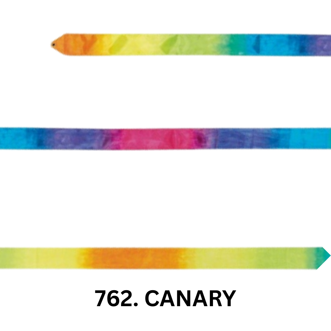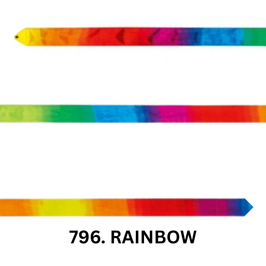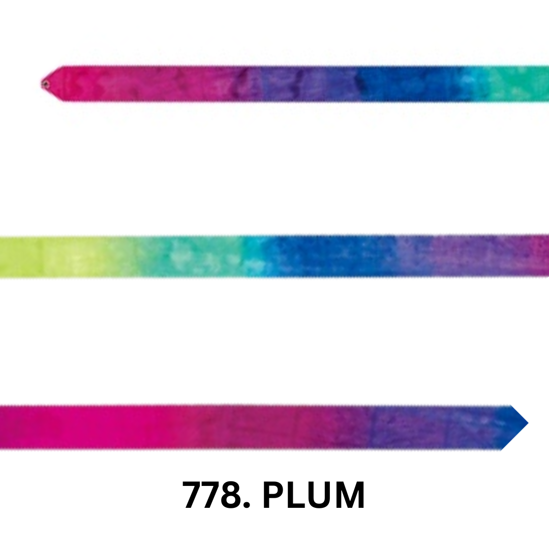 Disponible en una variedad de degradados modernos, como Canary (amarillo degradado), Dream-Blue (azul degradado), Plum (morado degradado) y Rainbow (arcoíris), este listón no solo es funcional, sino también visualmente atractivo, ideal para captar la atención de las gimnastas más jóvenes.