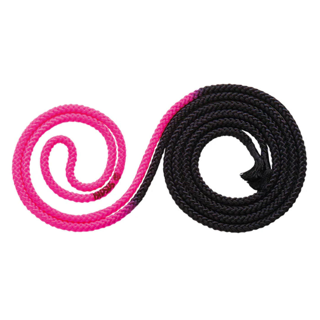 La cuerda de fácil manejo para gimnasia rÃtmica ofrece un peso moderado y una sensación de tensión ideal para un control cómodo durante entrenamientos y competencias. Su longitud es de poco más de 3 metros, permitiendo ajustarla fácilmente a la medida adecuada.